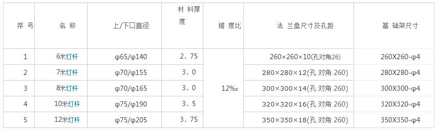 1、燈桿高度3-16米,主桿由大型折彎機壓制成形,壁厚2.5-6mm,具體外觀及 尺寸根據用戶要求定制。