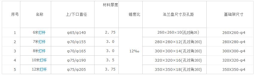 一、標準燈桿尺寸參數(shù)表